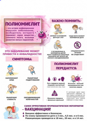 дети до 7 лет. Полиомиелит у детей возникает гораздо чаще, чем у взрослых;Беременные женщины;люди с очень ослабленным иммунитетом. Этому могут способствовать разные болезни, а также нарушения на эндокринном уровне, периоды после операций и т.д.;люди, страдающие иммунодефицитами.