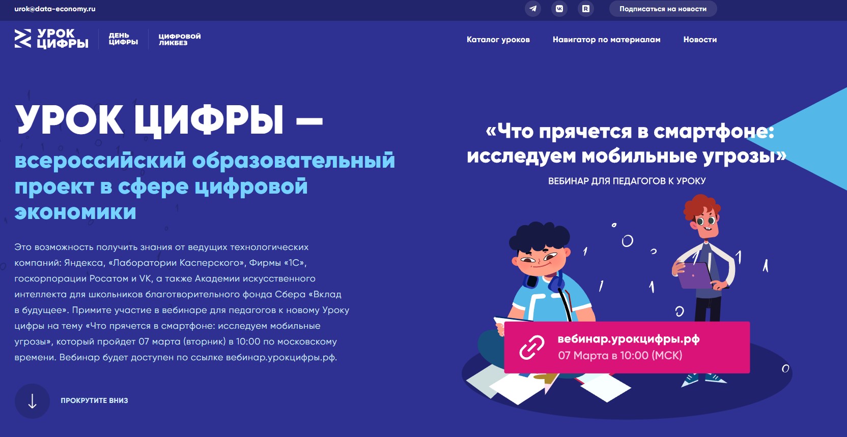 Это возможность получить знания от ведущих технологических компаний: Яндекса, «Лаборатории Касперского», Фирмы «1С», госкорпорации Росатом и VK, а также Академии искусственного интеллекта для школьников благотворительного фонда Сбера «Вклад в будущее». Примите участие в вебинаре для педагогов к новому Уроку цифры на тему «Что прячется в смартфоне: исследуем мобильные угрозы», который пройдет 07 марта (вторник) в 10:00 по московскому времени. Вебинар будет доступен по ссылке вебинар.урокцифры.рф.