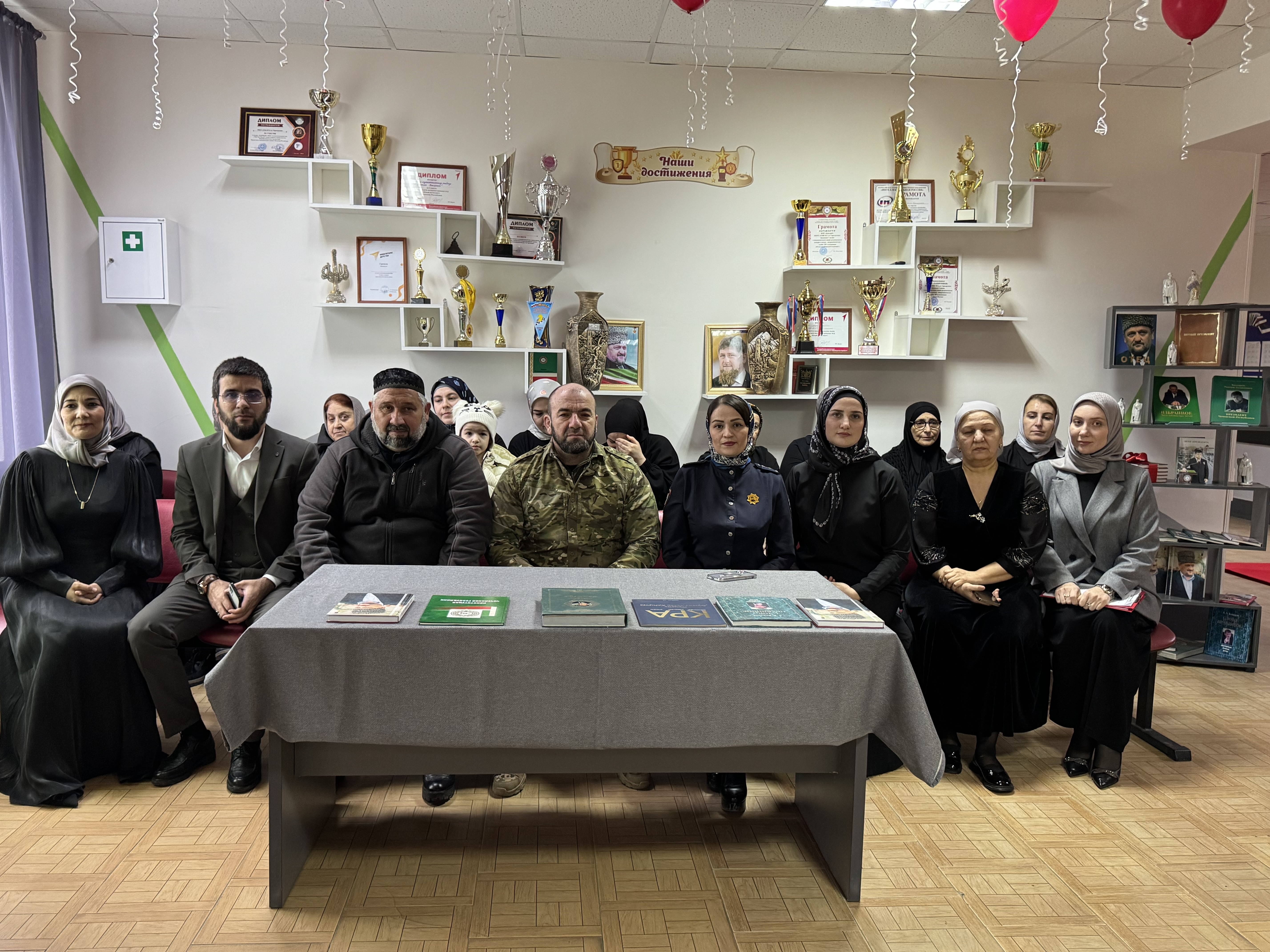 «Парта героя» была посвящена Первому Президенту Чеченской Республики, Герою России Ахмата-Хаджи Кадырову ( Дала г1азот къобал дойла цун).